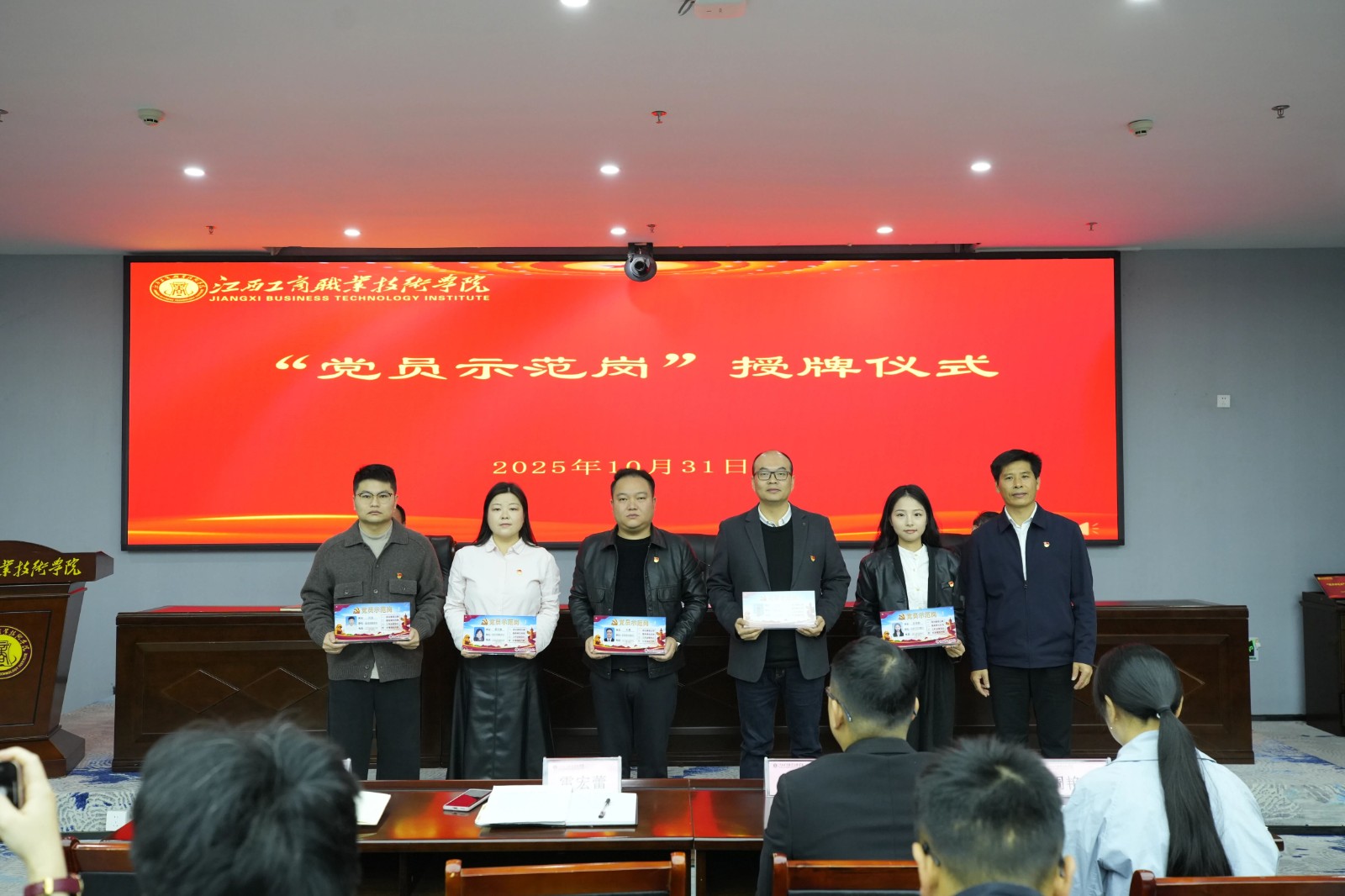 仪式上,党委委员、副校长胡志鹏宣读“党员示范岗”设立名单;党委领导为“党员示范岗”同志授牌 ;“党员示范岗”代表严鹤、王钰娟两位同志依次作表态发言。