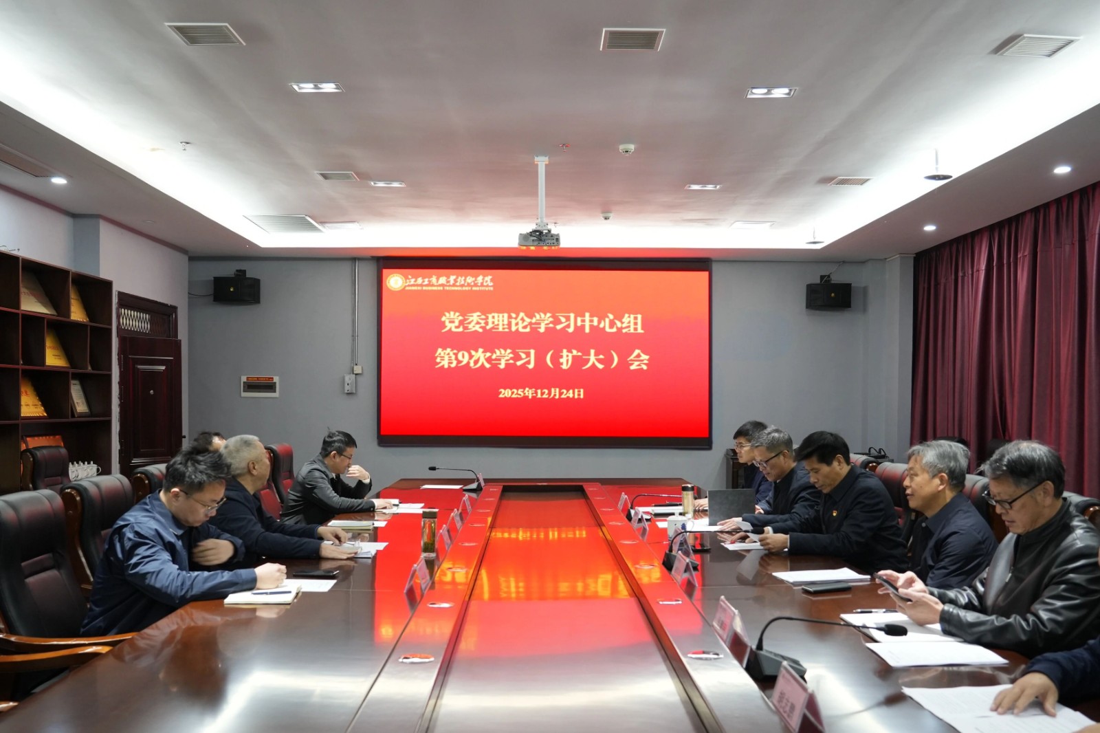 12月24日,学校在图书馆五楼第一会议室召开党委理论学习中心组第9次集体学习(扩大)会,深入学习贯彻习近平生态文明思想与习近平关于注重家庭家教家风建设的重要论述。党委书记、督导专员应露晨主持会议并讲话,学校党委理论学习中心组成员、校领导、全体中层干部参加学习会。