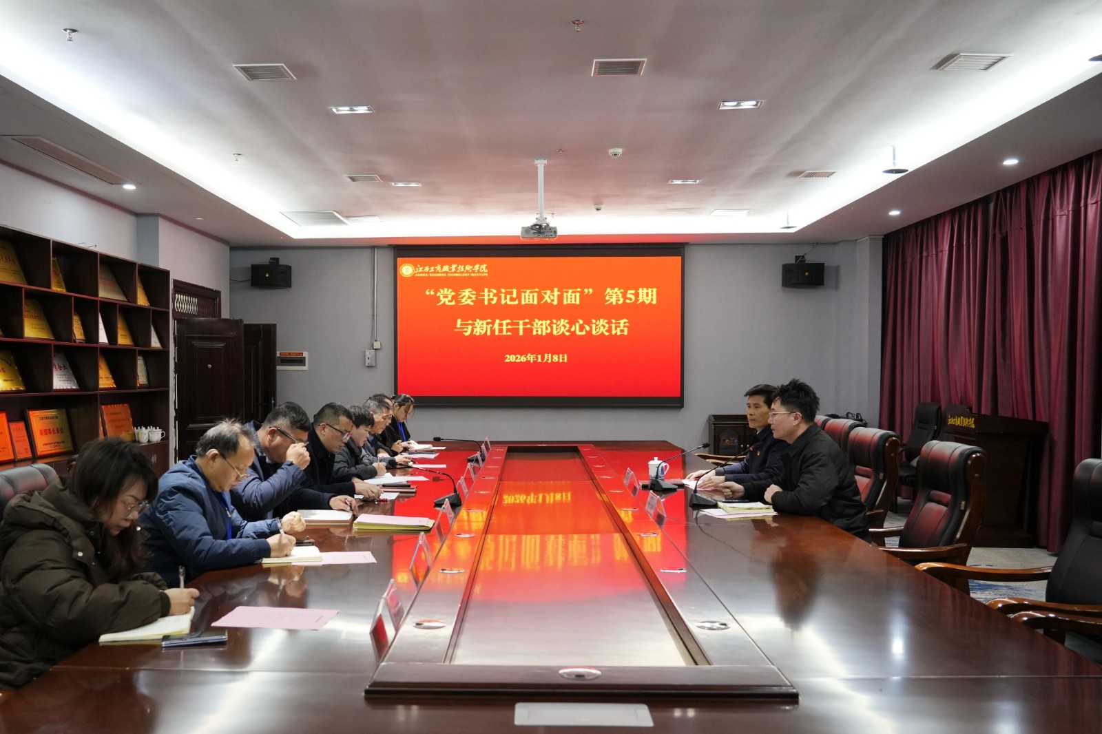 1月8日,学校“党委书记面对面”第5期活动在第一会议室举行。校党委书记、督导专员应露晨与新任职干部谈心谈话,落实党管干部原则,关爱激励干部实干担当、履职尽责、廉洁从政,以崭新姿态奋发有为。