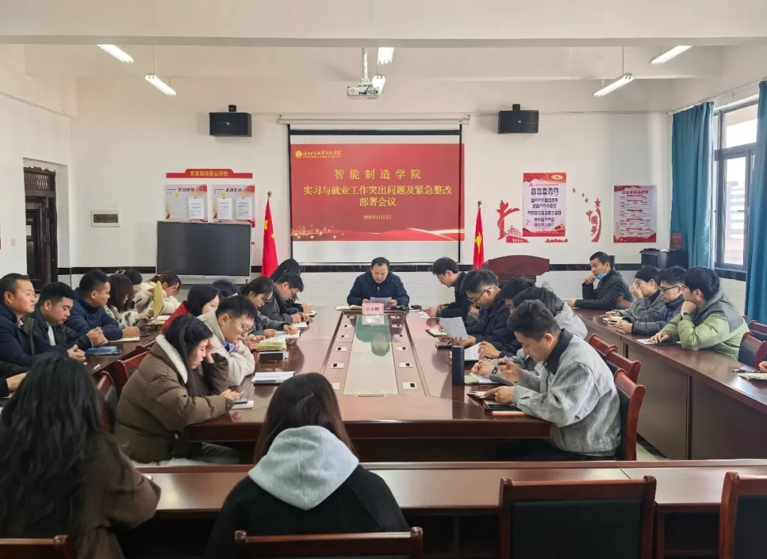 为持续提升人才培养质量,进一步做好学生实习与就业工作,1月15日,智能制造学院召开专题会议,就当前工作中的重点环节进行分析研讨,并对下一阶段工作进行部署。学院院长胡志鹏、党支部副书记付伟、毕业班实习指导教师及辅导员参加会议。