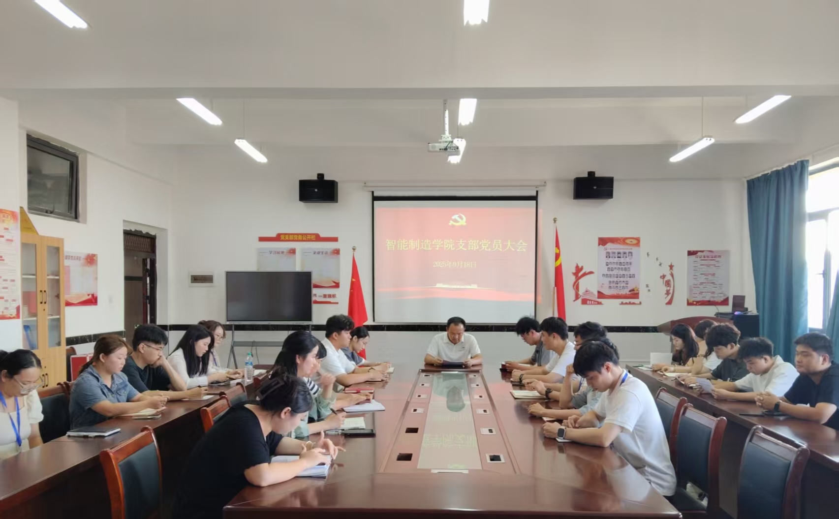 9月18日,智能制造学院党支部在党员活动室北501召开党员大会。会议由党支部书记胡志鹏主持,全体师生党员参加。