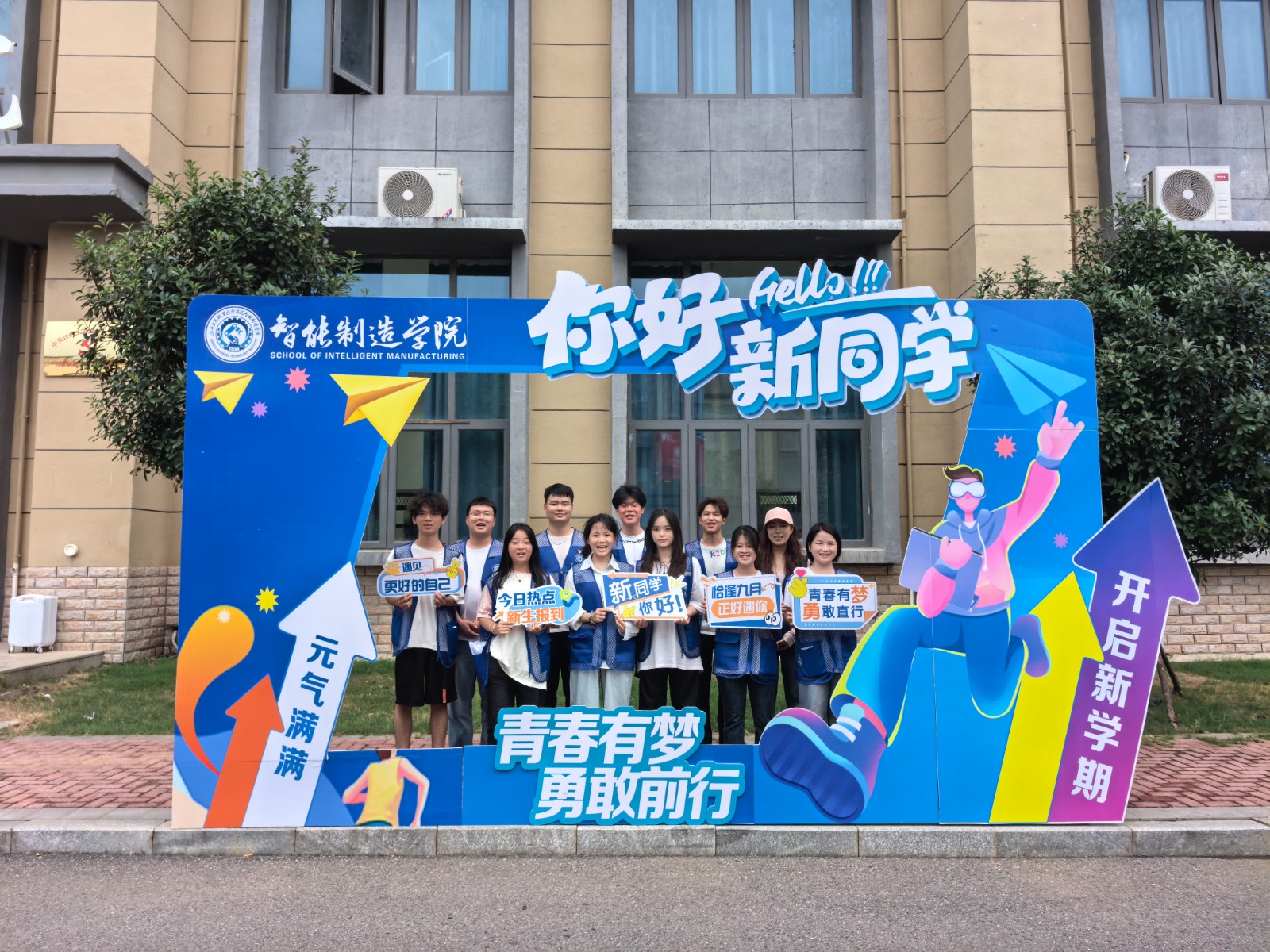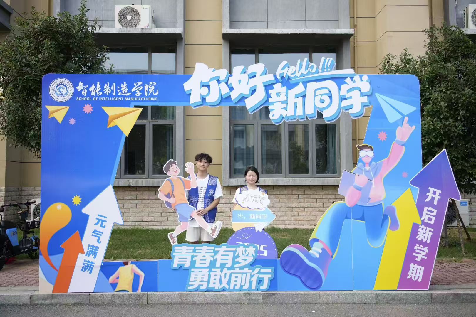 在主会场入口处,一眼就能看到巨型的“欢迎新同学”打卡点!走进迎新会场,学校相关部门及各学院把学科特色巧妙融入了迎新设计中,还设置了专属合影框,吸引许多新生和家长打卡拍照,用镜头记录与智能制造学院的第一份相遇。