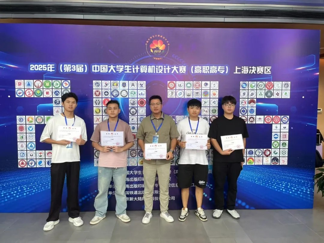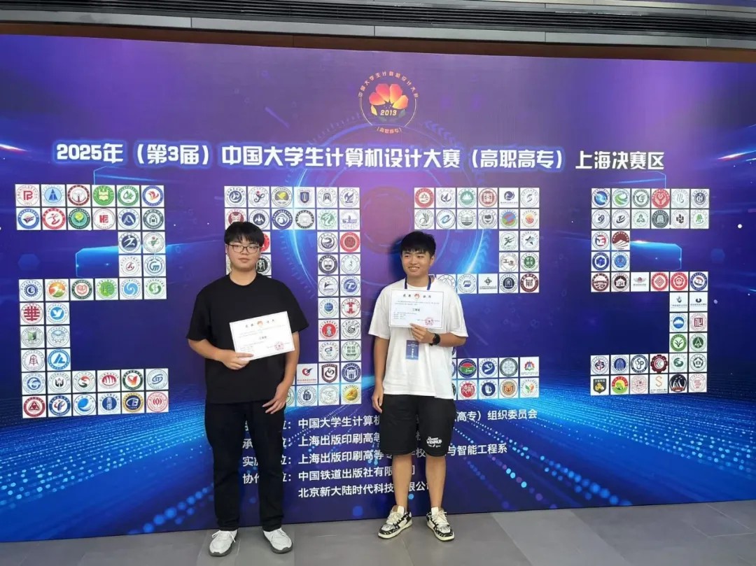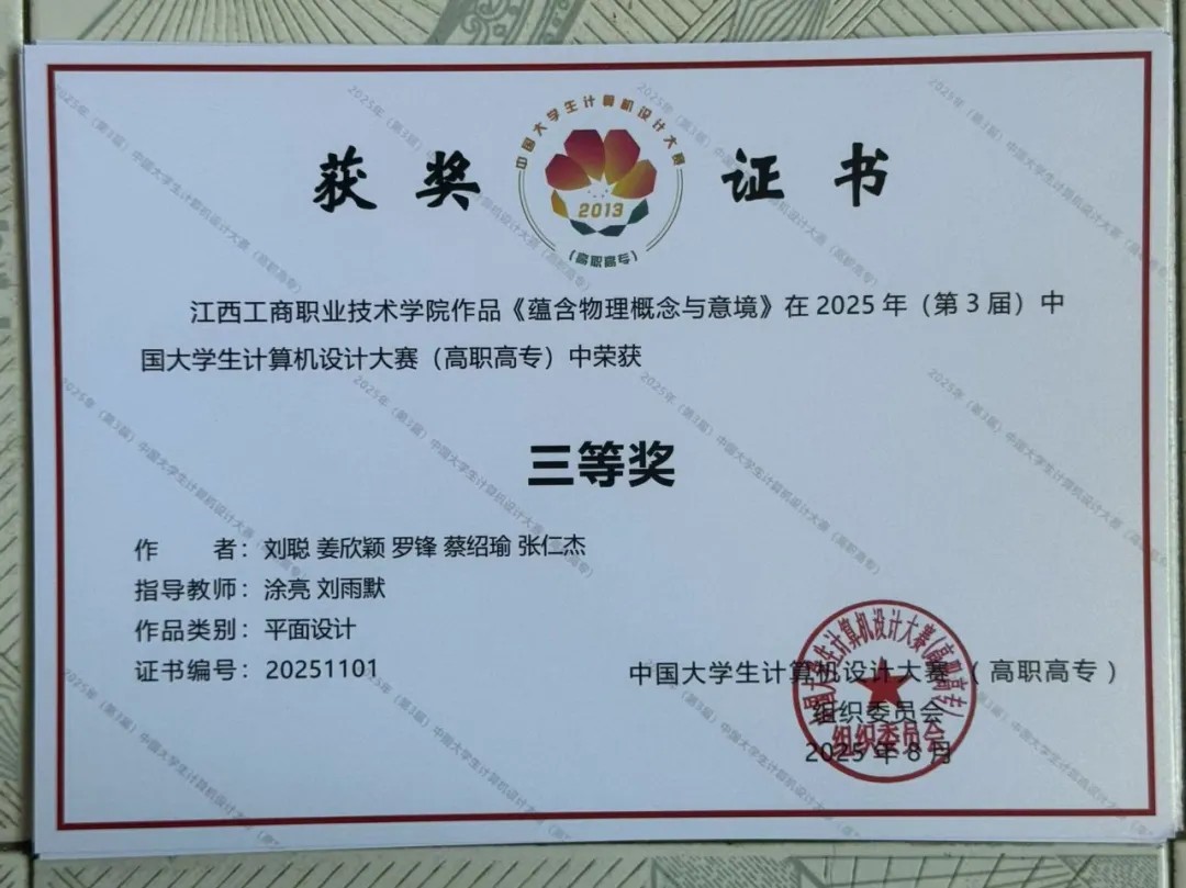 2025 年 8 月 3 日,我院学子在带队教师涂亮的带领下,奔赴上海出版印刷高等专科学校奉贤校区,参加 2025 年(第 3 届)中国大学生计算机设计大赛(高职高专)数媒静态设计竞赛。本次赛事汇聚了全国 19 个省市 173 所高职院校的 435 件作品,竞争异常激烈。经过四天的激烈角逐,我院两支参赛队伍凭借扎实的专业功底和出色的创意表现,最终荣获国赛三等奖 2 项,为学校赢得了荣誉。